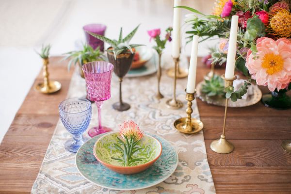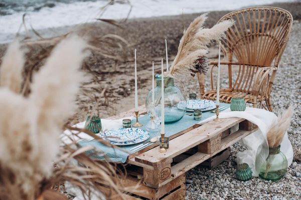 If you picked ‘royal’ and you are a bride, you can opt for a delicate ivory gown made of velvet or taffeta, embroidered with floral motifs or pearls. If you are a groom, a knight’s costume would be the best option, along with a symbolic sword. Wild flowers, candles and golden objects will complete the perfect decor.