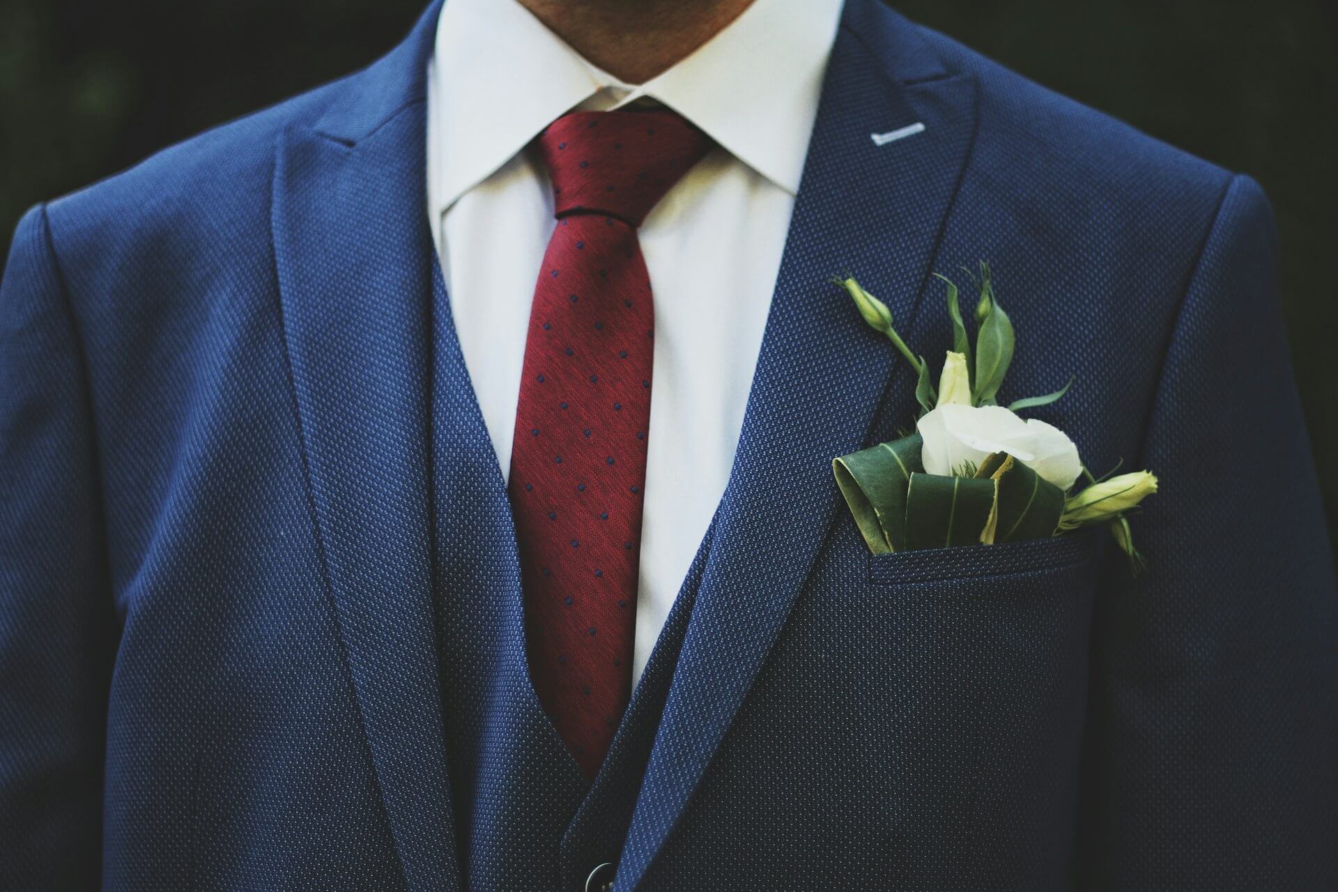 For the groom, a baby blue tie or pocket square can tie his look into the overall theme without overshadowing the bride. For a bolder statement, a light blue suit jacket paired with neutral trousers creates a fresh, modern look that’s perfect for a spring or summer wedding.